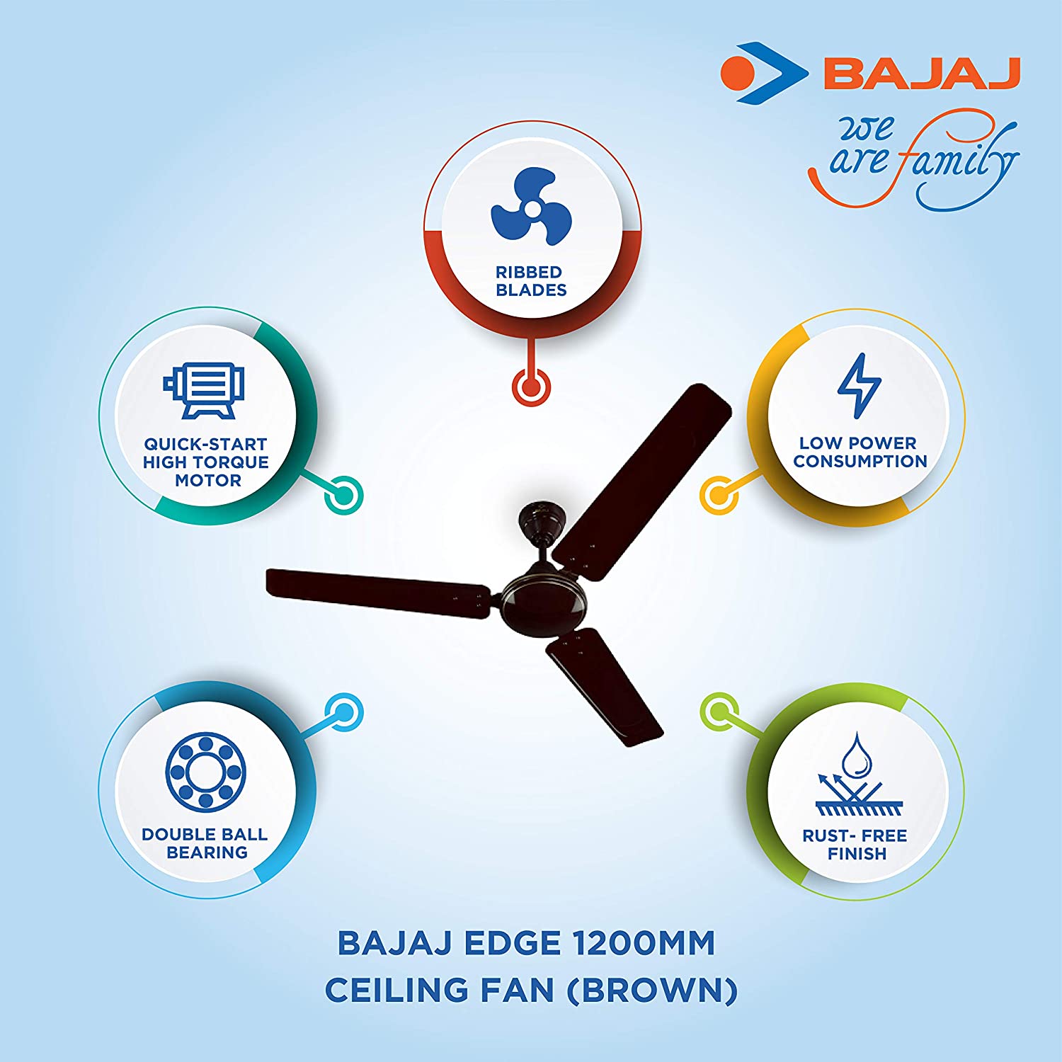 QUICK START HIGH TORQUE MOTORBajaj Edge 1200 mm comes with quick start high torque motor which enables higher acceleration giving you faster cooling experience. |