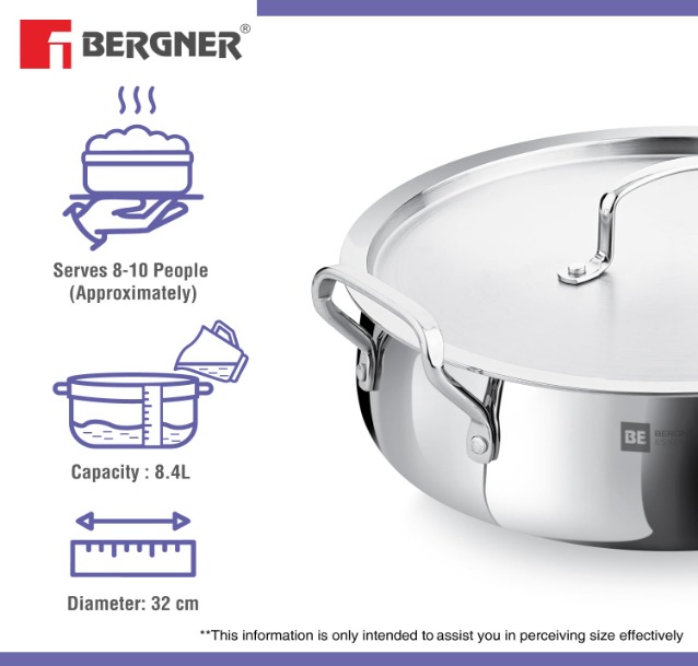 - Biryani Bliss: Master aromatic biryanis with this 32 cm, 84 L Tri-Ply Handi!