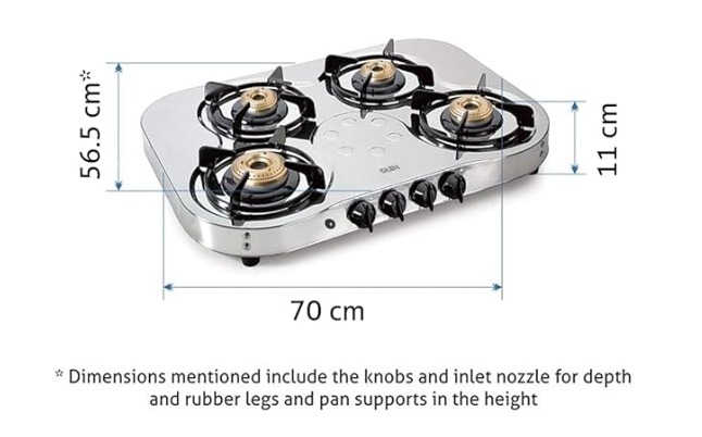 • ๐—ฆ๐—ฝ๐—ฎ๐—ฐ๐—ถ๐—ผ๐˜‚๐˜€ ๐—Ÿ๐—ฎ๐˜†๐—ผ๐˜‚๐˜: With 700 x 565 mm spacious layout along with four burners allows you to multitask and cook multiple dishes simultaneously, saving time and effort.