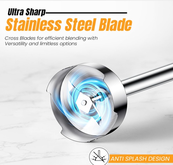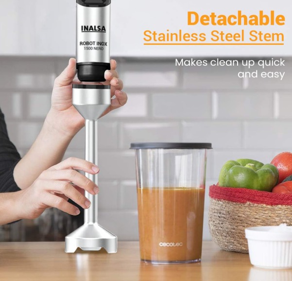 - POWERFUL: 1500W hand blender with maximum power capable of crushing the hardest foods thanks to its resistant 4-edge stainless steel blades. It is capable of blending foods of varying hardness in a short amount of time.