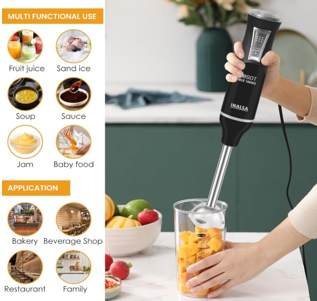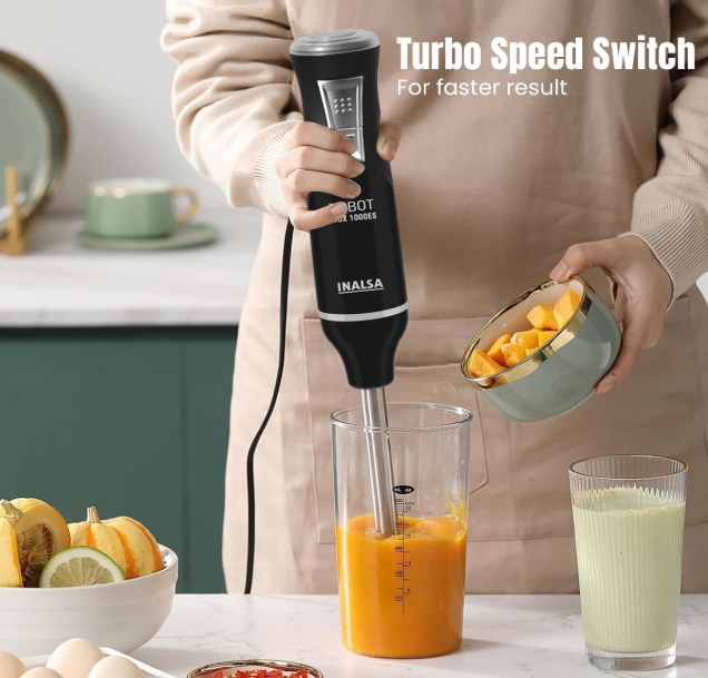 Be the first to review “INALSA Hand Blender Mixer 1000W DC Motor Low Noise 20 Speed Control with Turbo Function BPA Free Stainless Steel Rod & Blades Detachable Stem For Cleaning and storage 2 Yr Warranty, Robot Inox 1000ES”