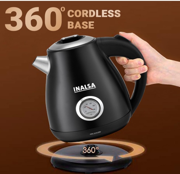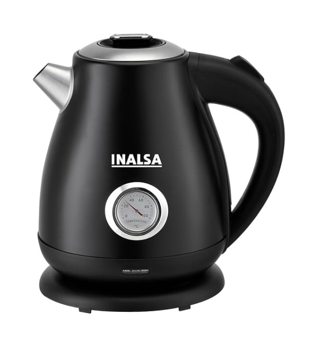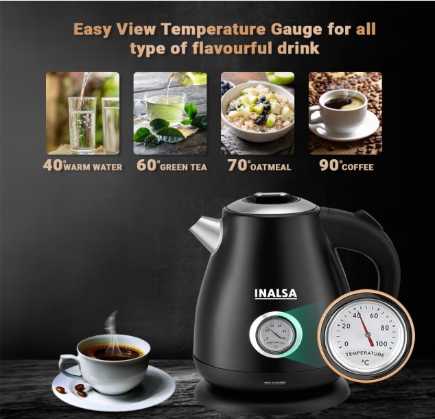 TEMPERATURE DISPLAY & SAFETY FEATURES – With the INALSA electric kettle for boiling water it is easy to view the water temperature via the display while a built-in thermometer dial allows you to heat water to a suitable temperature for tasty tea and coffee. The electric water boiler has both boil-dry and overheating protection together with an auto-shutoff providing maximum safety while the kettle is operating unattended.