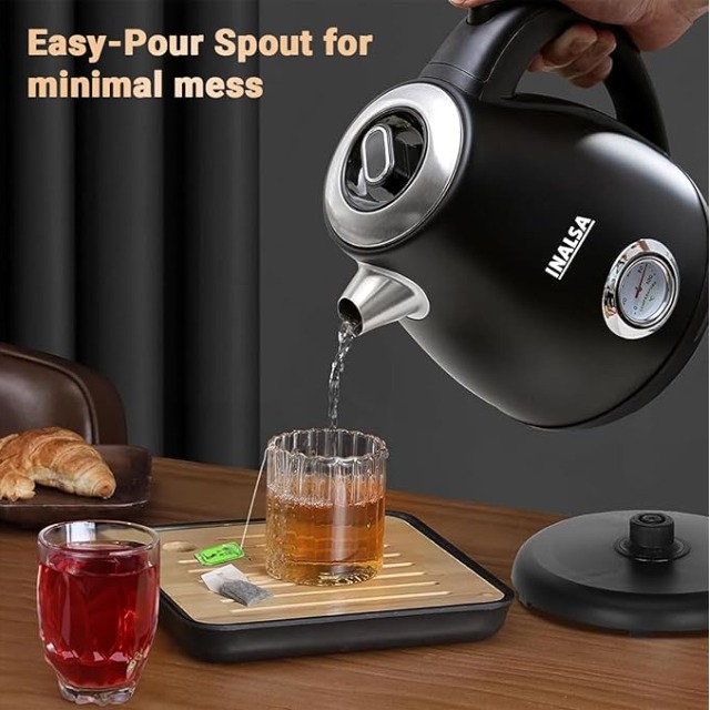 FOOD-GRAGE KETTLE – Stylish INALSA electric kettle made from professional food-grade 304 stainless steel. This electric tea kettle for boiling water is perfect for daily use like tea, coffee, and much more without having to worry about metal rusting and fading over time. Will provide many years of continuous use.