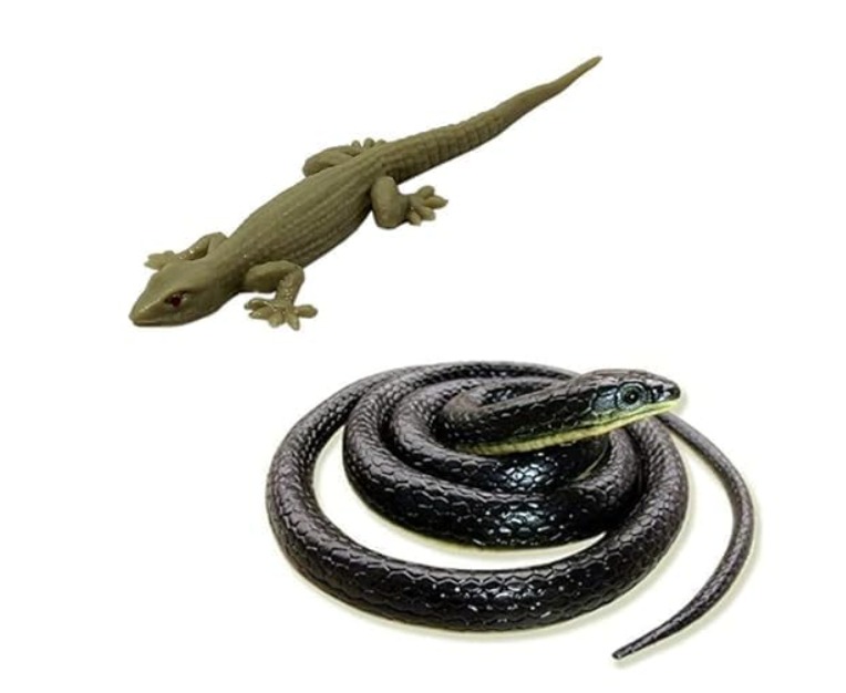 KRySt Combo (1 Brown Lizard + Black Snake Toys) Original Look Real Looking Rubber Lizard Toy, Chipkali Toy Prank, Chipkali Toys