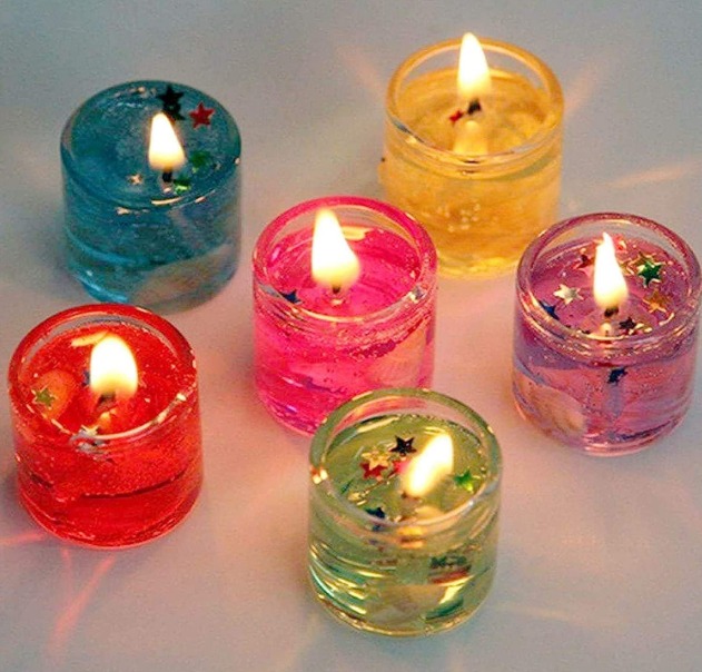 • Vibrant & Attractive Design – Beautifully crafted jelly candles in transparent glass jars with colorful gel, glitter, and star embellishments for a glowing decorative effect.
