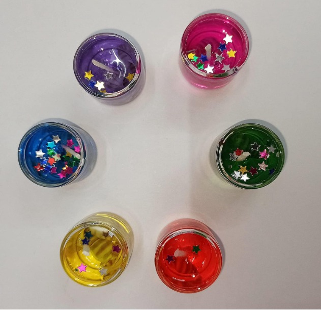 Kryst Decorative Jelly Candles | Colorful Candles with Stars & Glitter for Home Décor, Festivals, Parties & Gifting – Set of 6