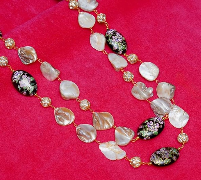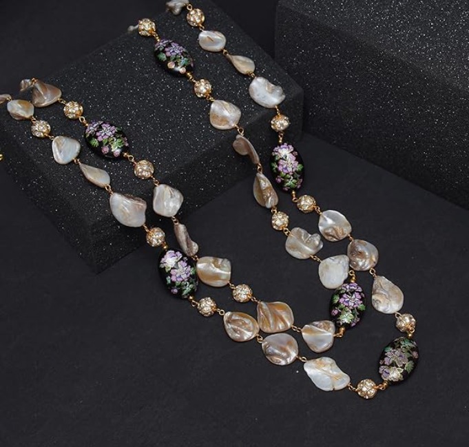 • High-Quality Materials: Made with lustrous mother-of-pearl accents, sparkling diamond balls, and statement floral print beads.