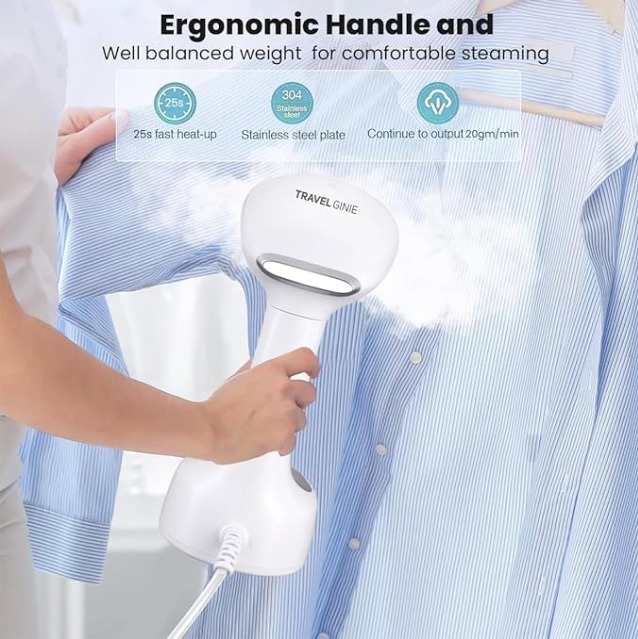 Get Wrinkle-Free Clothes Every Time- With 1500W of power, Travel Ginie Garment Steamer blasts away wrinkles efficiently and easily glides across various garments. Rapid Even Heat technology gives better performance and perfect results every time