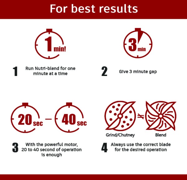 - Grind in 30 Seconds: The speed-breakers inside the jars ensure proper grinding of even the hardest spices, ensuring smoother chutneys and more finely ground masalas than any other grinder. You can grind even a single piece of kaali mirch (peppercorn), so effective is the performance
